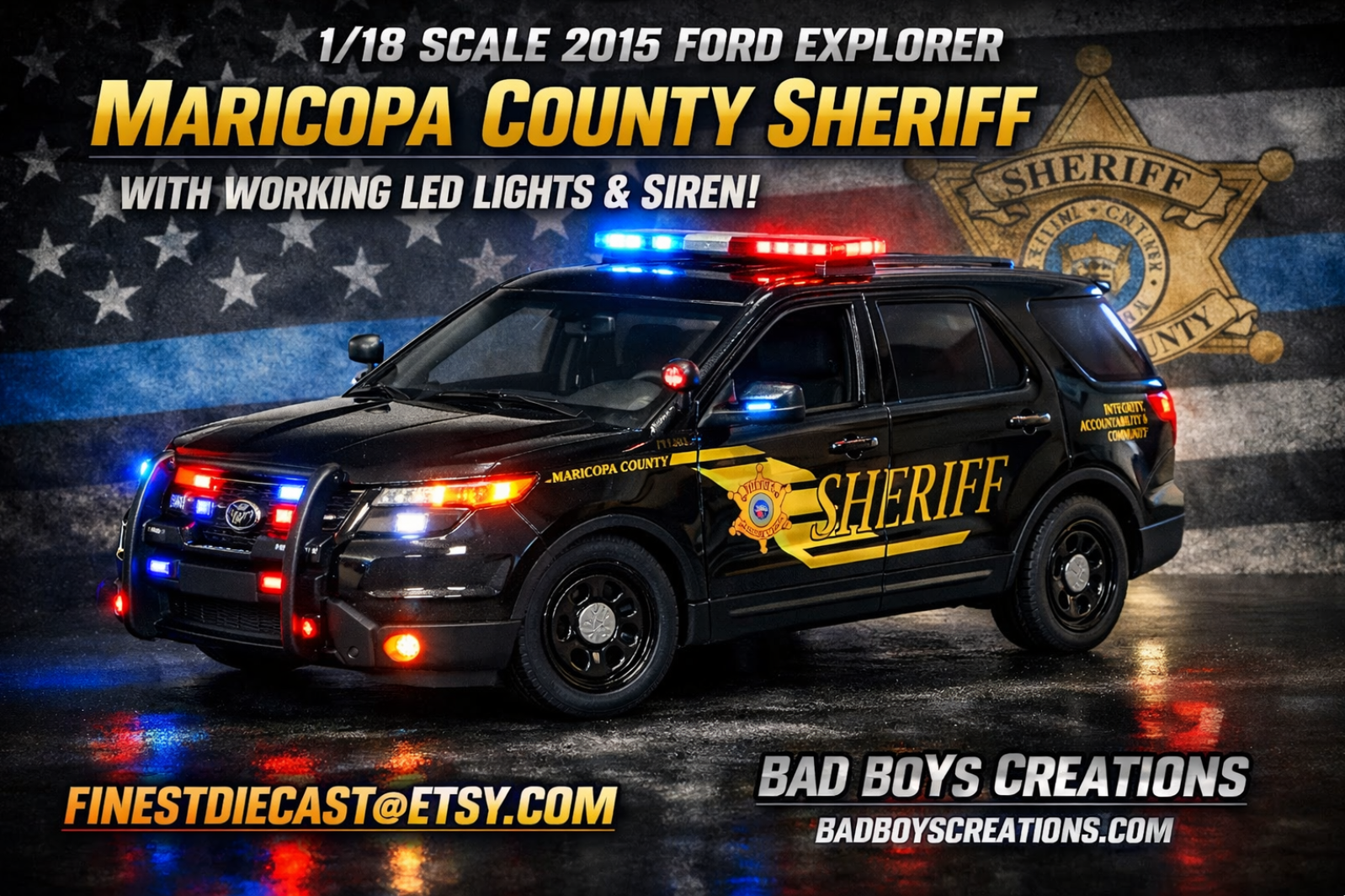 1/18 Scale 2015 Ford Explorer Maricopa County Sheriff Arizona Diecast Model | Custom Working LED Lights & Siren | Police Replica by Badboys Creations