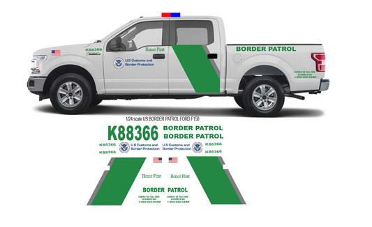 1/24 Scale 2022 Ford F-150 US Border Patrol Waterslide Decals Sheet – Custom Laser Printed Diecast Graphics (Approx. 4 Sets) | Badboys Creations